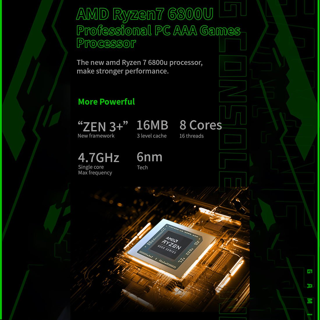 .Processor: AMD Radeon/Ryzen 76800U processor, "Zen3+" architecture / 8 cores and 16 threads / 4.7 GHZ single-core MAX main frequency