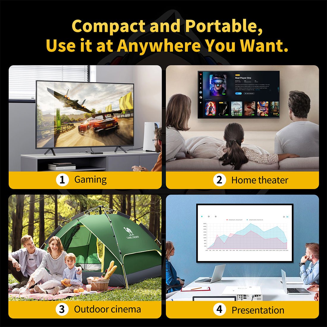 .4K-Supported HD Visuals: Supports 4K ultra-clear resolution with native 1080P (1920×1080), delivering crisp, bright, and detailed images for movies, sports, and gaming.