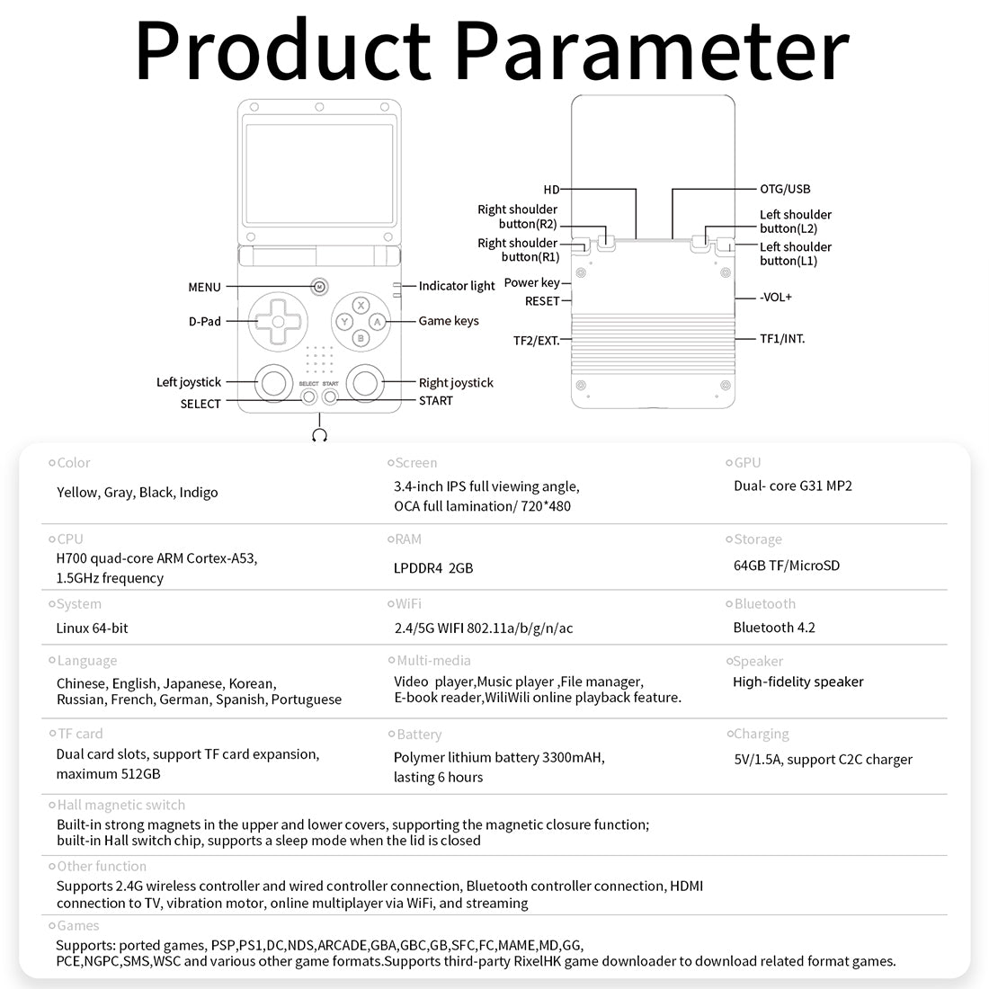 🎮.Dual TF Card System & Multimedia Entertainment Hub: Supports independent storage for system and games, with expandable memory up to 512GB. Enjoy efficient upgrades without deleting games. Also functions as a media center with support for MP4, MKV, MP3, FLAC playback, TXT reading, and online streaming via WiliWili.