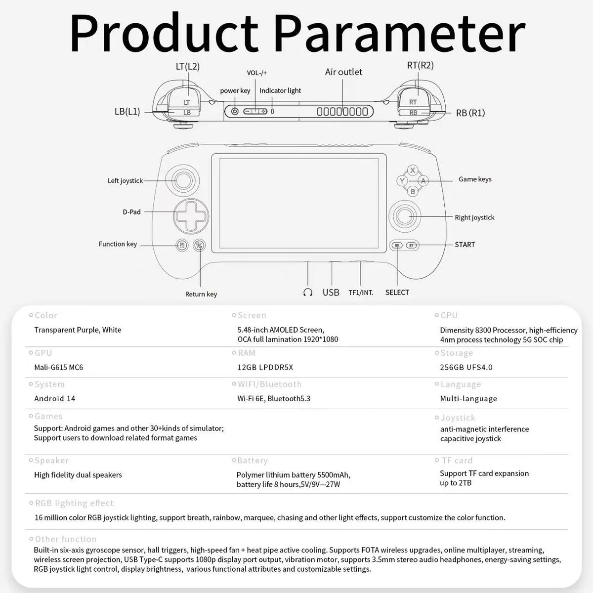 .Large Built-in Storage: Equipped with 256GB internal storage and supports TF card expansion. Easily store games, movies, music, photos, and more for a richer entertainment experience.