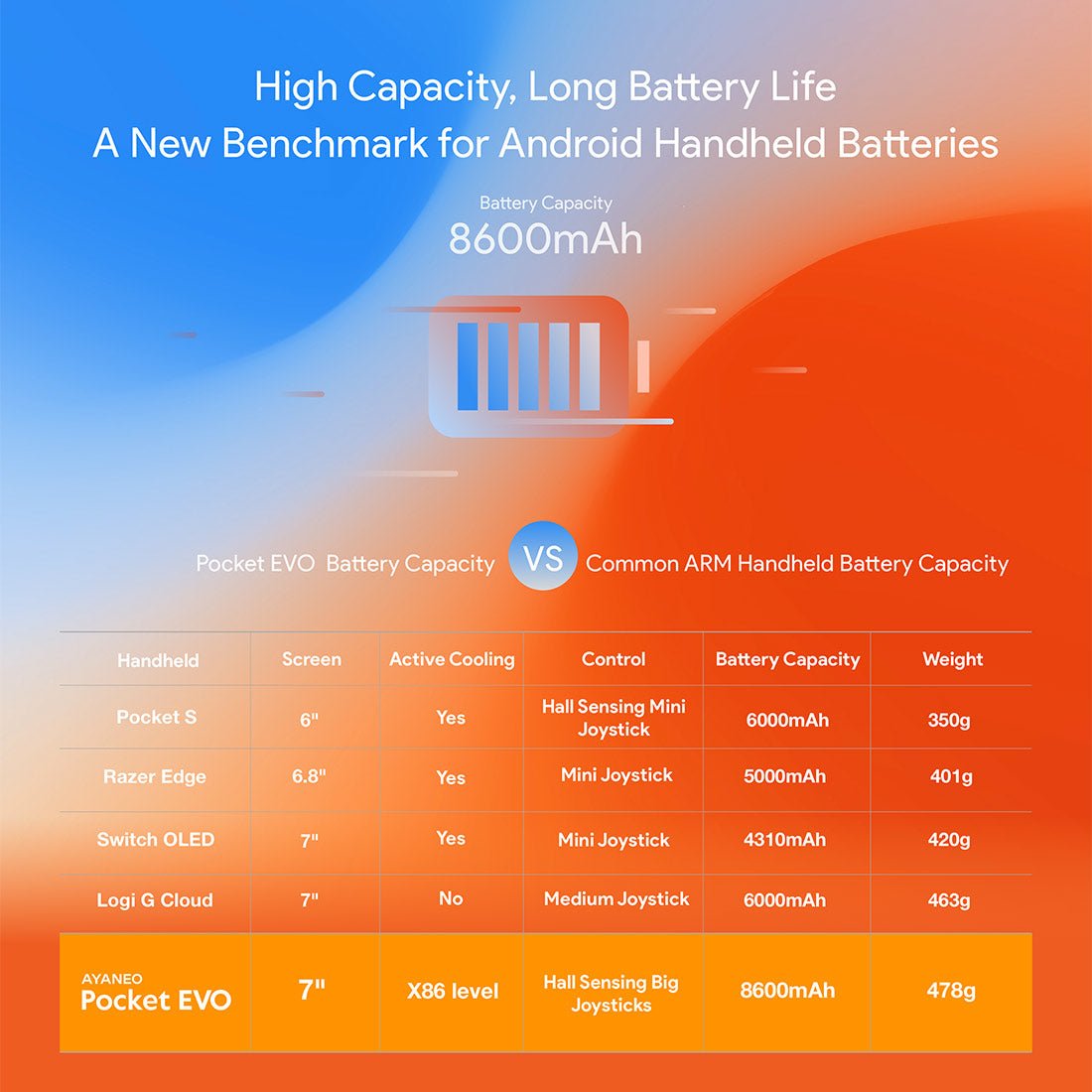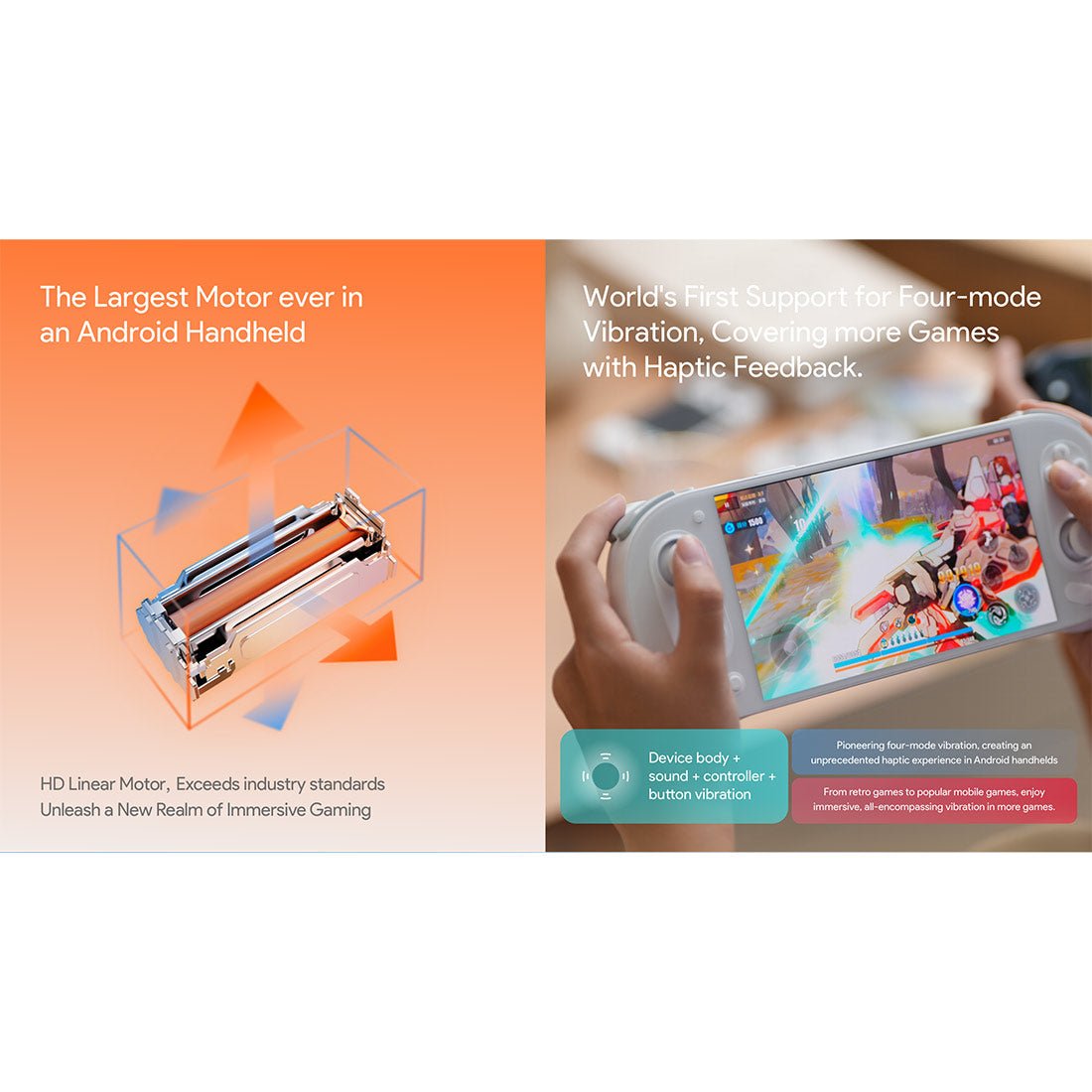 .Immersive HD Vibration & Efficient Cooling: Equipped with a high-definition linear vibration motor supporting four vibration modes, the Pocket EVO delivers immersive tactile feedback. A large 8600mAh battery supports 25W PD fast charging, while an X86-grade cooling system with a slim fan and copper heatsink ensures long-lasting performance.