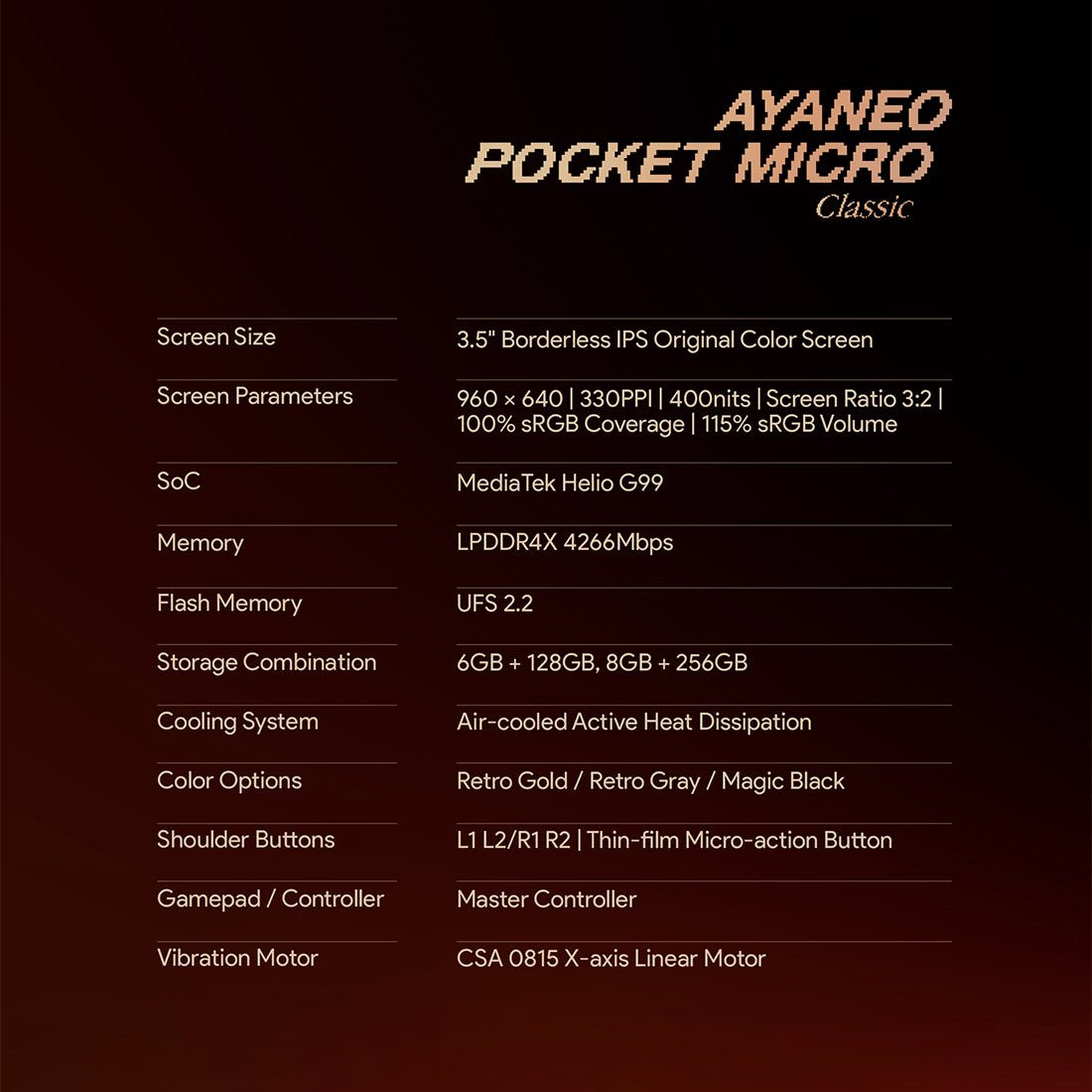 AYANEO POCKET MICRO Classic Retro Handheld Game Console *No Joystick*