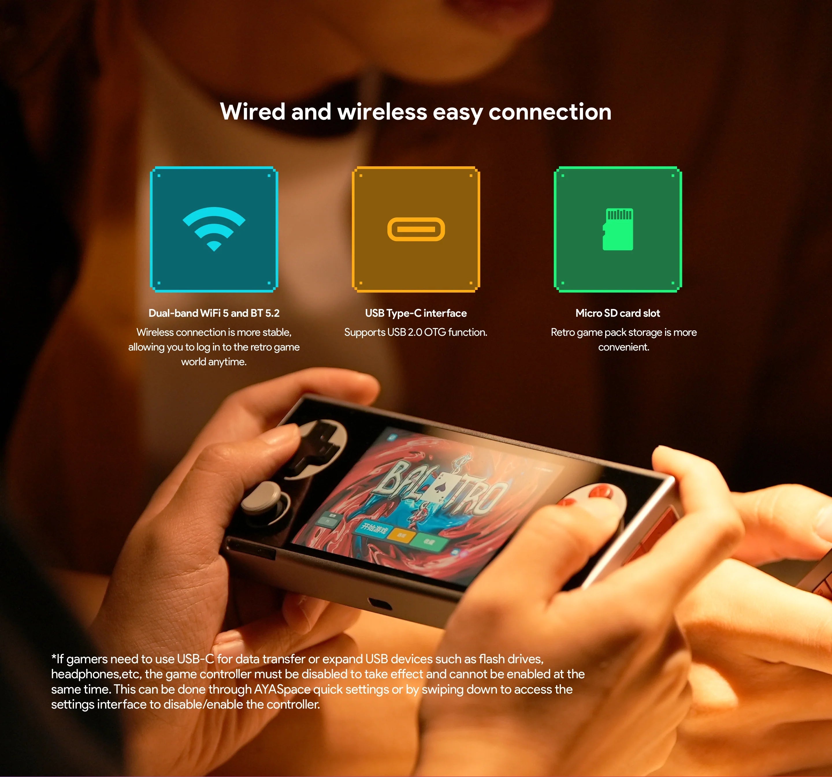 🎮.Multiple Modes: Supports WiFi and Bluetooth connectivity for online multiplayer, wireless screen casting, and Bluetooth controller pairing.