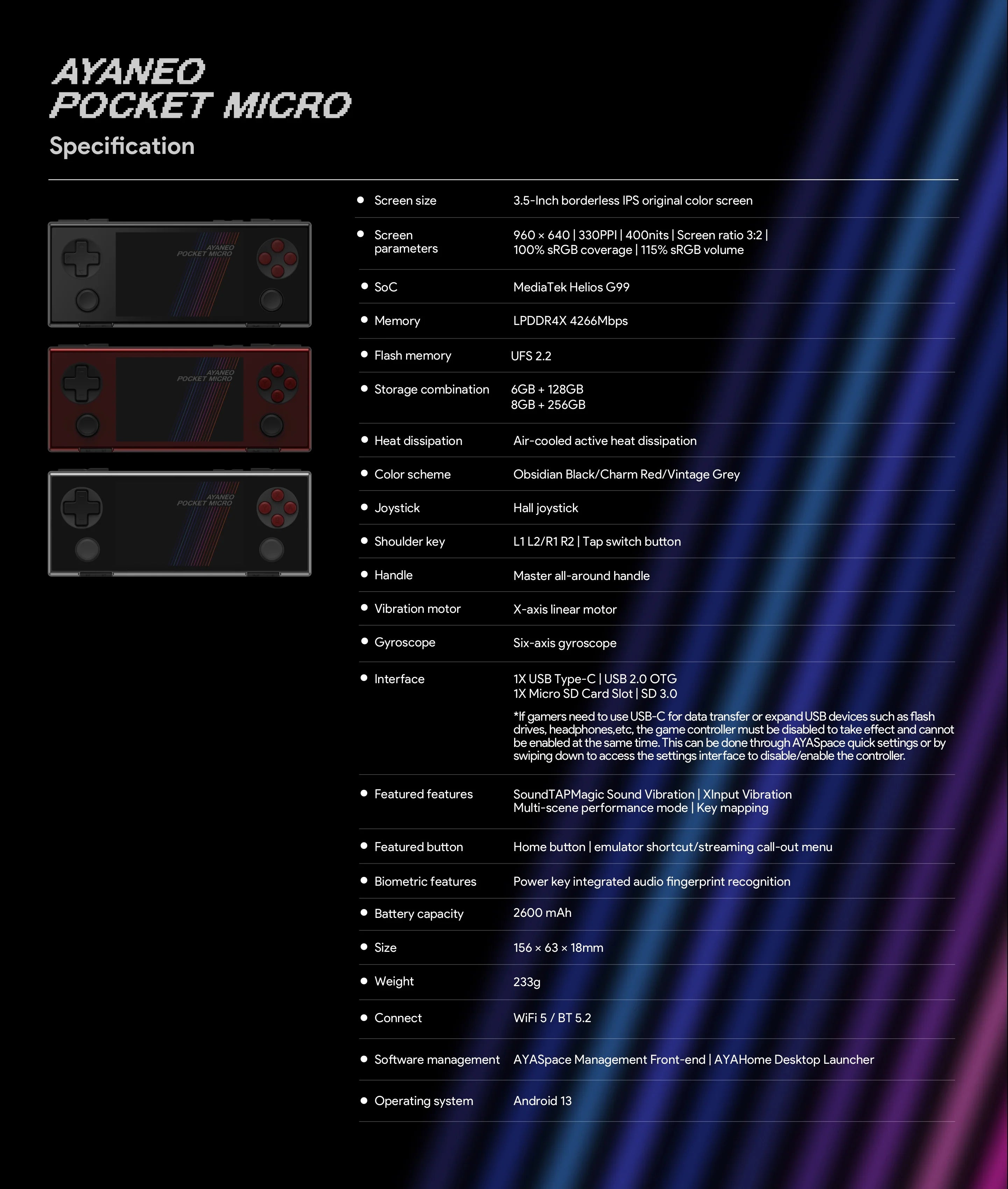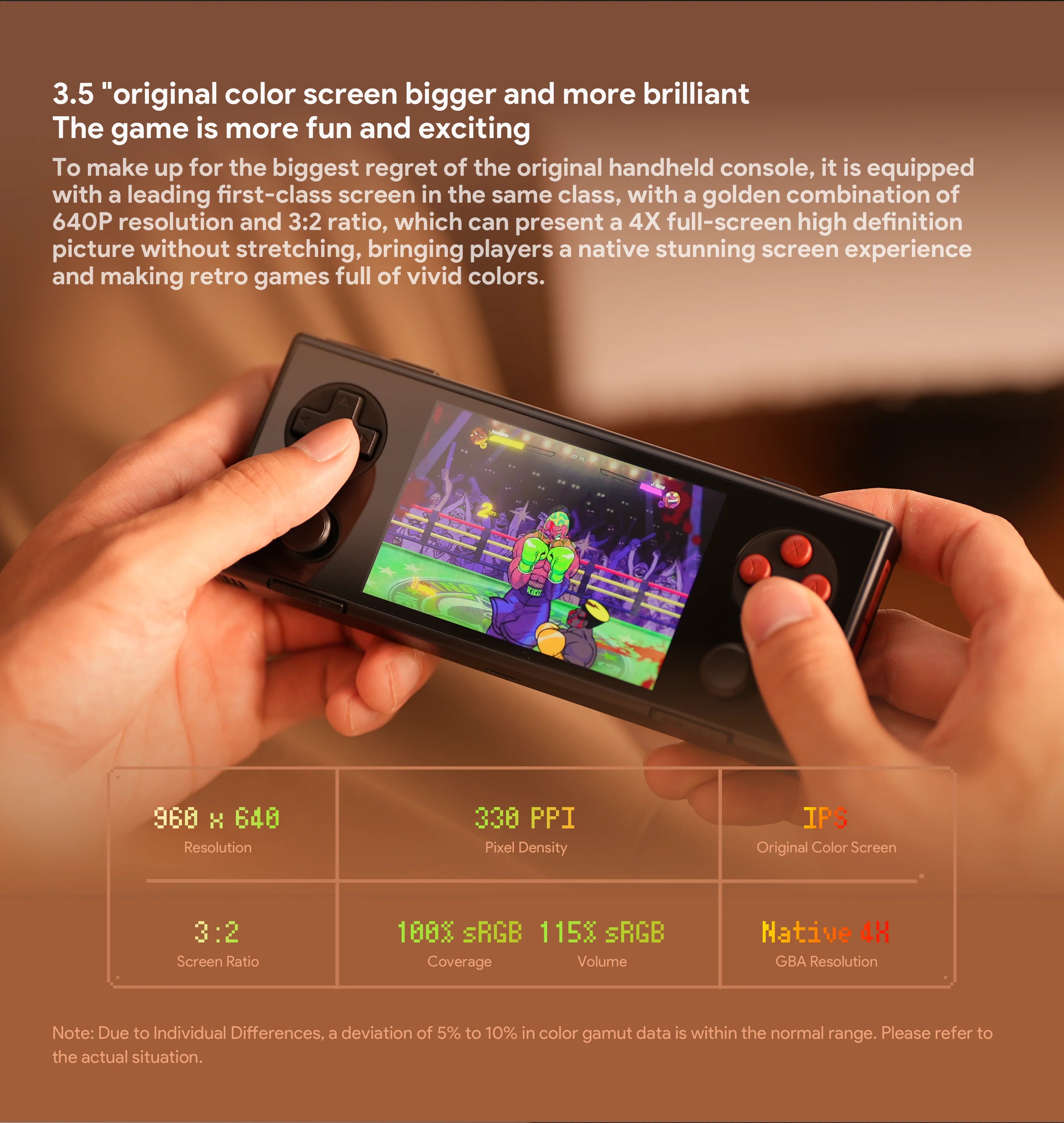 🎮.Immersive Display: 3.5-inch 640P TrueColor display with a 3:2 bezel-less screen ratio.