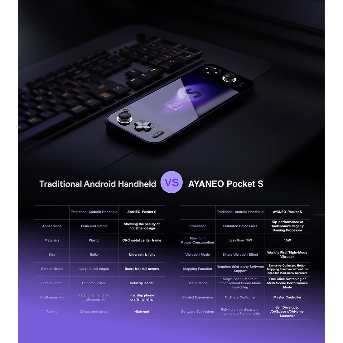 .Advanced Controls & Seamless Connectivity: Enjoy a premium gaming experience with the Master all-in-one controller, featuring precision Hall-effect joysticks, linear Hall triggers, X-axis linear motor, and a six-axis gyroscope for immersive, responsive gameplay. The intuitive control layout includes classic D-pad and ABXY buttons, a touchpad for secondary analog input, and versatile shoulder buttons—perfect for both retro and modern games. Stay connected with Wi-Fi, Bluetooth 5.3, a full-featured USB 3.2 Gen 2 Type-C port (DP 1.4 video output), and TF card expansion for maximum flexibility across all use cases.