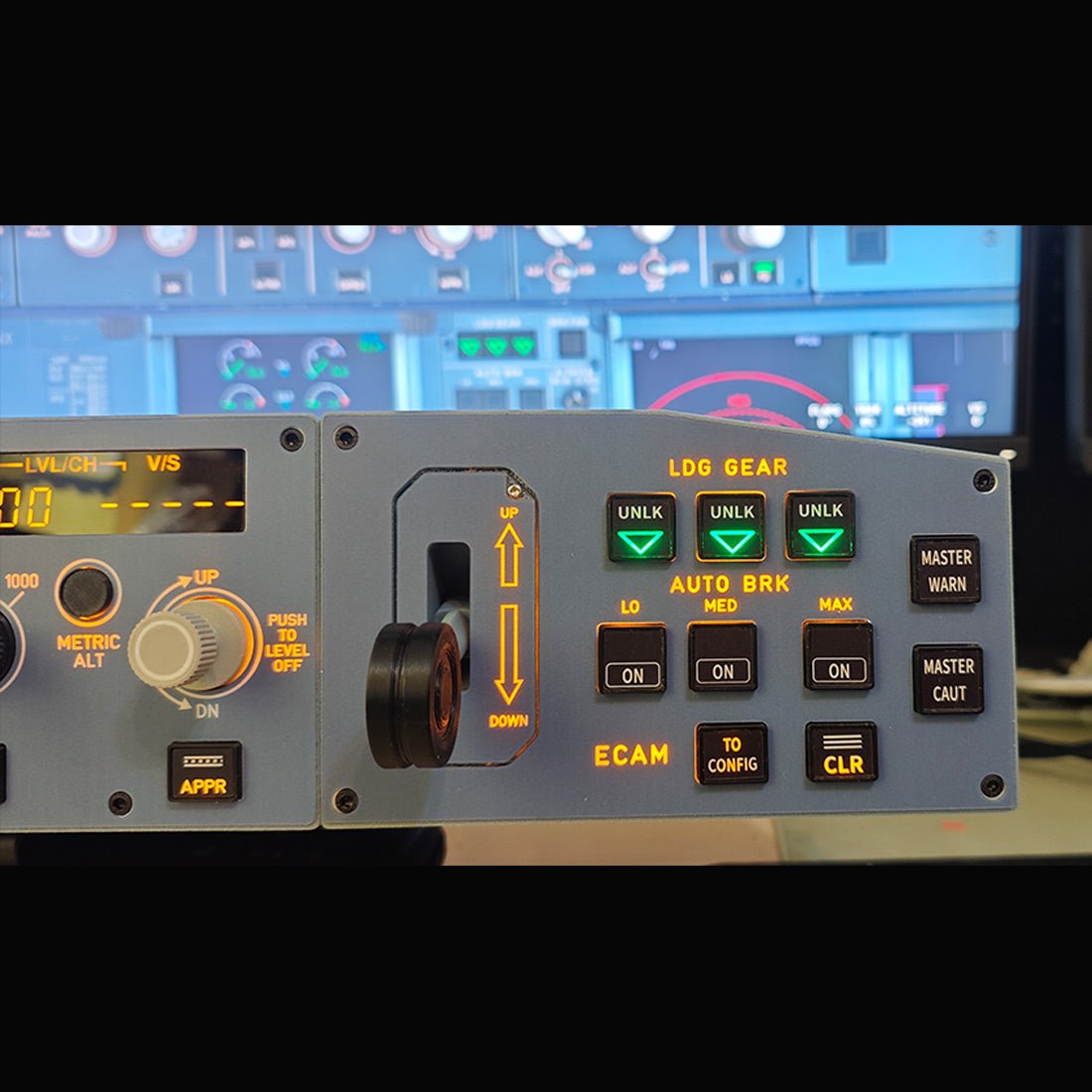 .Complete Integrated Setup: Includes the FCU+left-side EFIS, and ECAM/Gear/Auto-Brake Warnings in one streamlined cockpit panel for authentic A32X simulation.