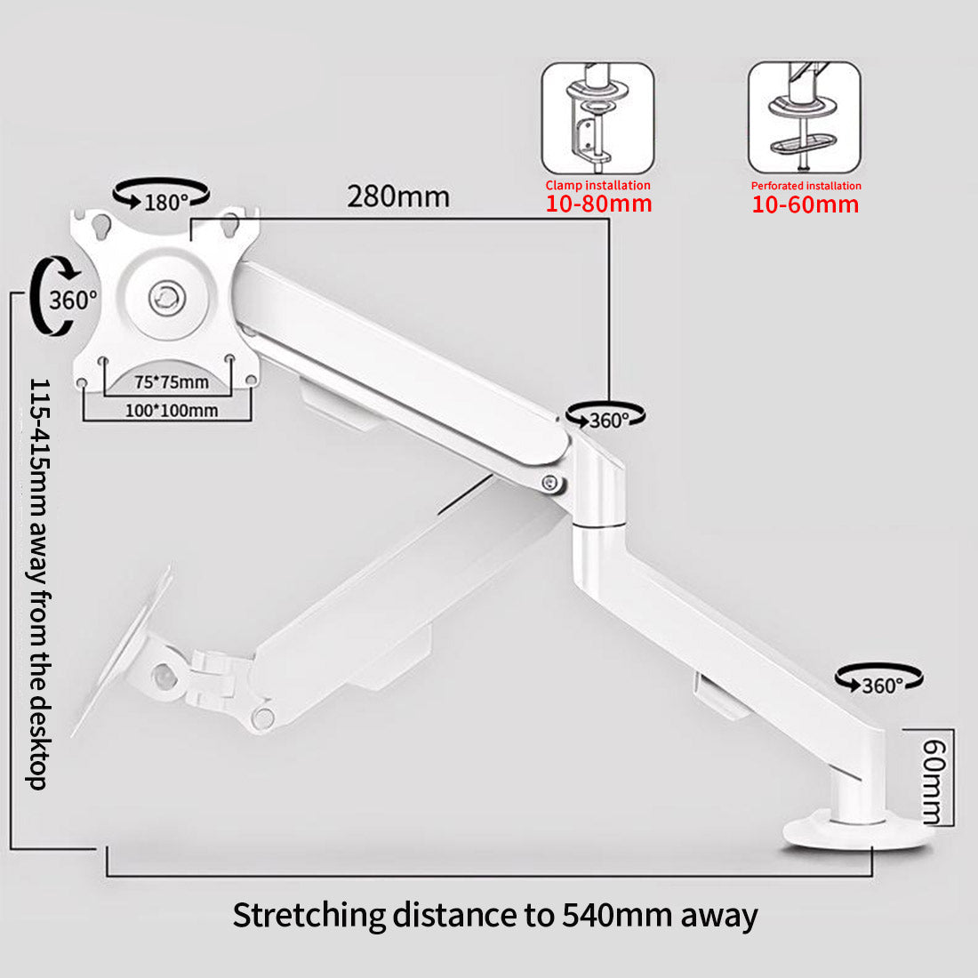 .Flexible 4-Axis Adjustment: Features a 4-axis adjustable arm with a maximum extension of 540mm, height up to 415mm, and supports loads up to 6kg. Includes built-in cable management clips for a clean setup.