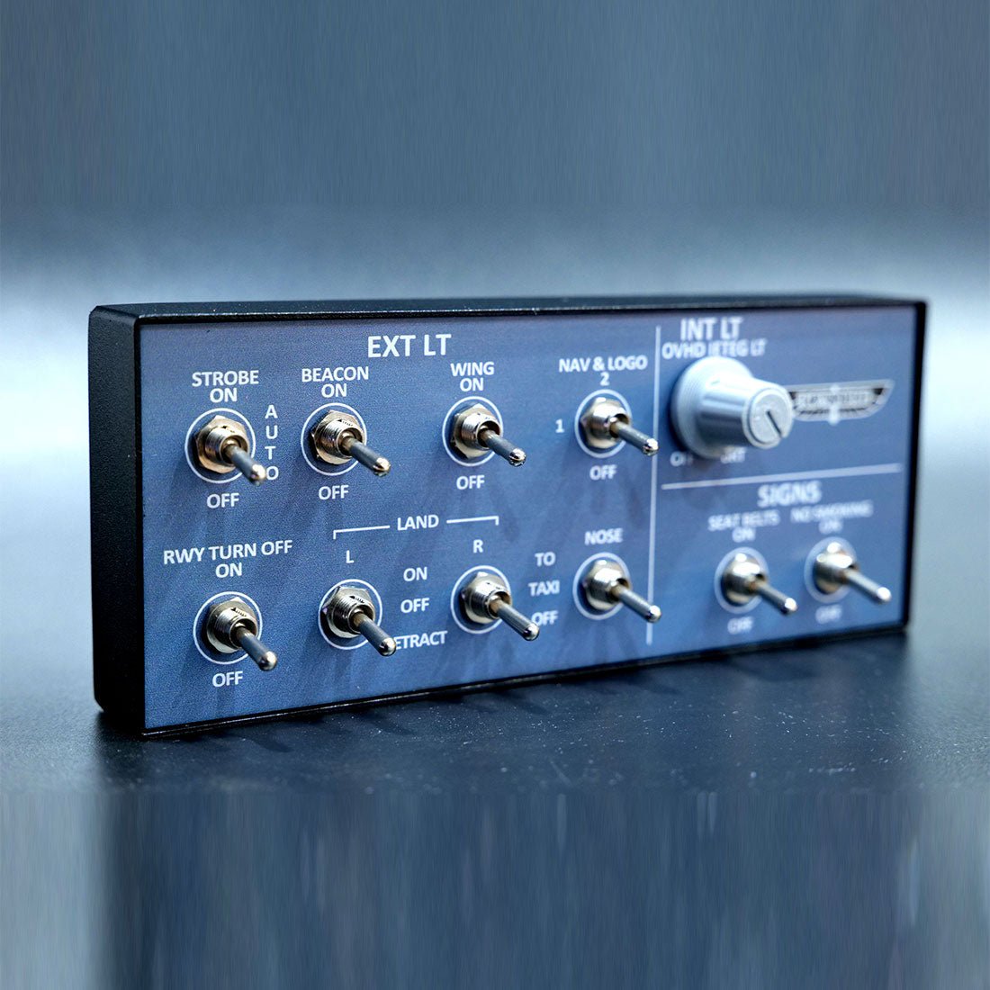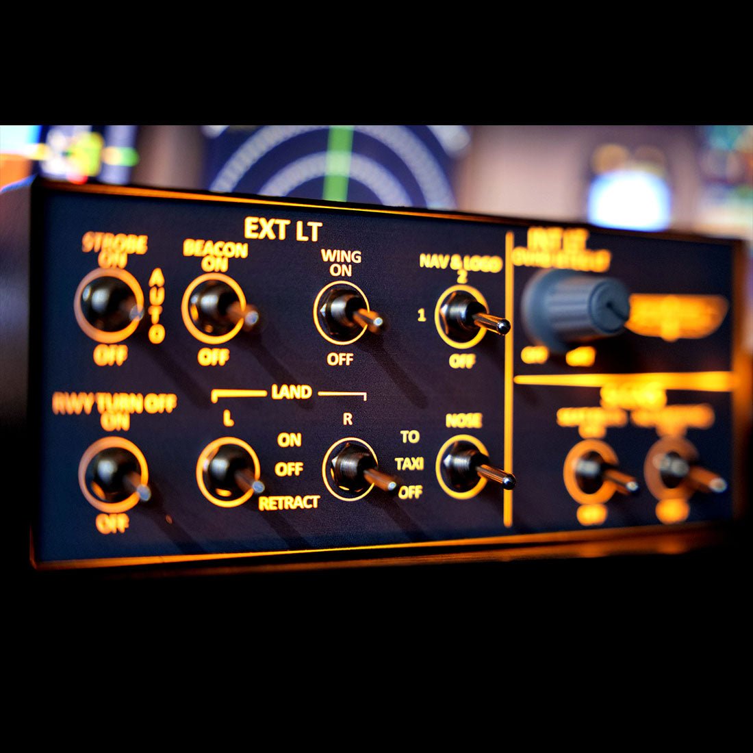 .Functional Dual-Position Switches: The panel includes dual-position toggle switches for key functions such as Terrain Radar, Windshear, Seatbelt Sign, and No Smoking indicator.