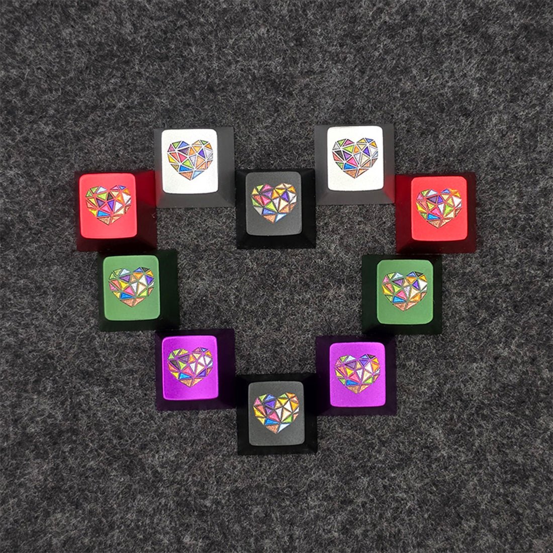 .Vibrant “Glass Heart” Theme: Inspired by shimmering crystal, this keycap features a multicolor finish that shifts beautifully under light, bringing a romantic, artistic glow to any keyboard setup.