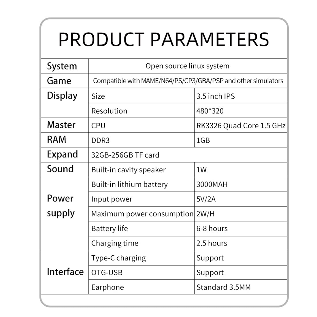 🎮Screen--Features a 3.5-inch IPS full-fit screen (480 x 320 resolution).