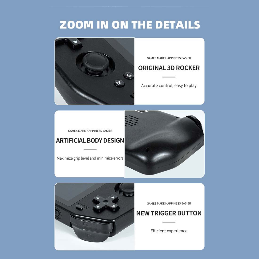 🎮High Performance Processors-- Adopts an T618 processor to allow you to play games smoothly, designed with the 5.5-inch IPS touchable clear screen at a resolution of 750 x 1280, this retro handheld gaming device features good portability.