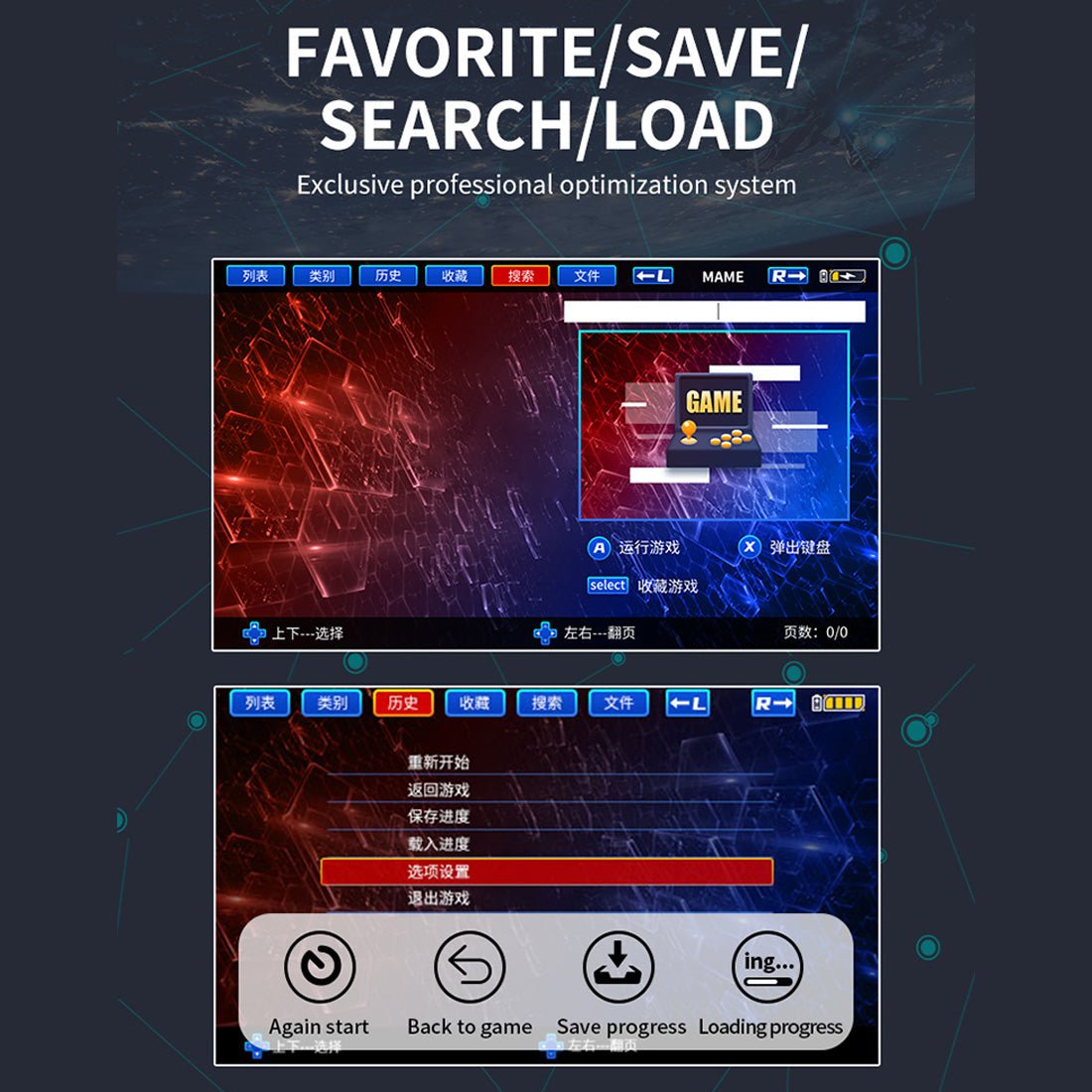 [Multiple Functions] You are able to play games, watch videos and listen to music with the two-player game console. Compatible with 3.5mm stereo headphones, and functions include on/read file, search game, check recently played games, and collect favorite games. Capable of connecting computers, televisions, monitors, and projectors through the HDMI interface.