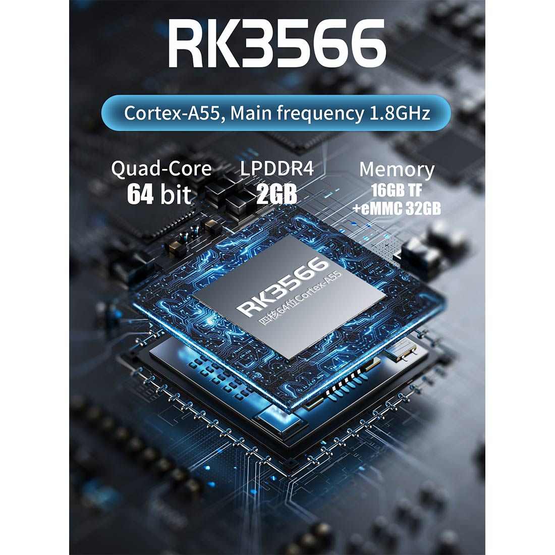 CPU: RK3566 Quad-core 64-bit Cortex-A55, 1.8GHz
